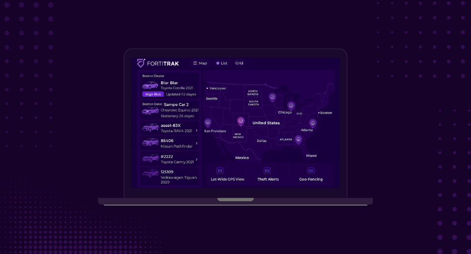 FortiTrak’s platform gives dealerships a live visual of every vehicle on their lot — sorted by status, location, and condition.